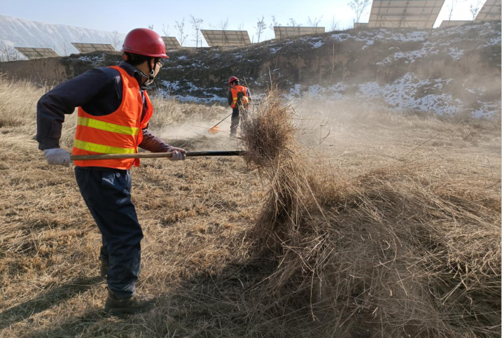 為進一步保障電站安全運營環(huán)境,從源頭消除火災隱患,11月1日—12月28日,臨洮電站開展了為期五十八天的光伏區(qū)雜草治理工作,全面清除光伏區(qū)周邊雜草一百二十余萬平方米、修剪樹木千余棵。